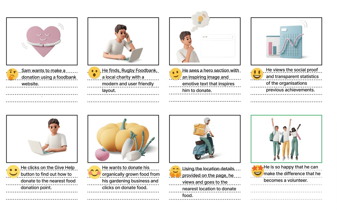 The Rugby food bank is a local non-profit organisation dedicated to providing food assistance for individuals and family in need. The purpose of the project was to redesign the user interface (UI) by improving its usability, and overall user experience.