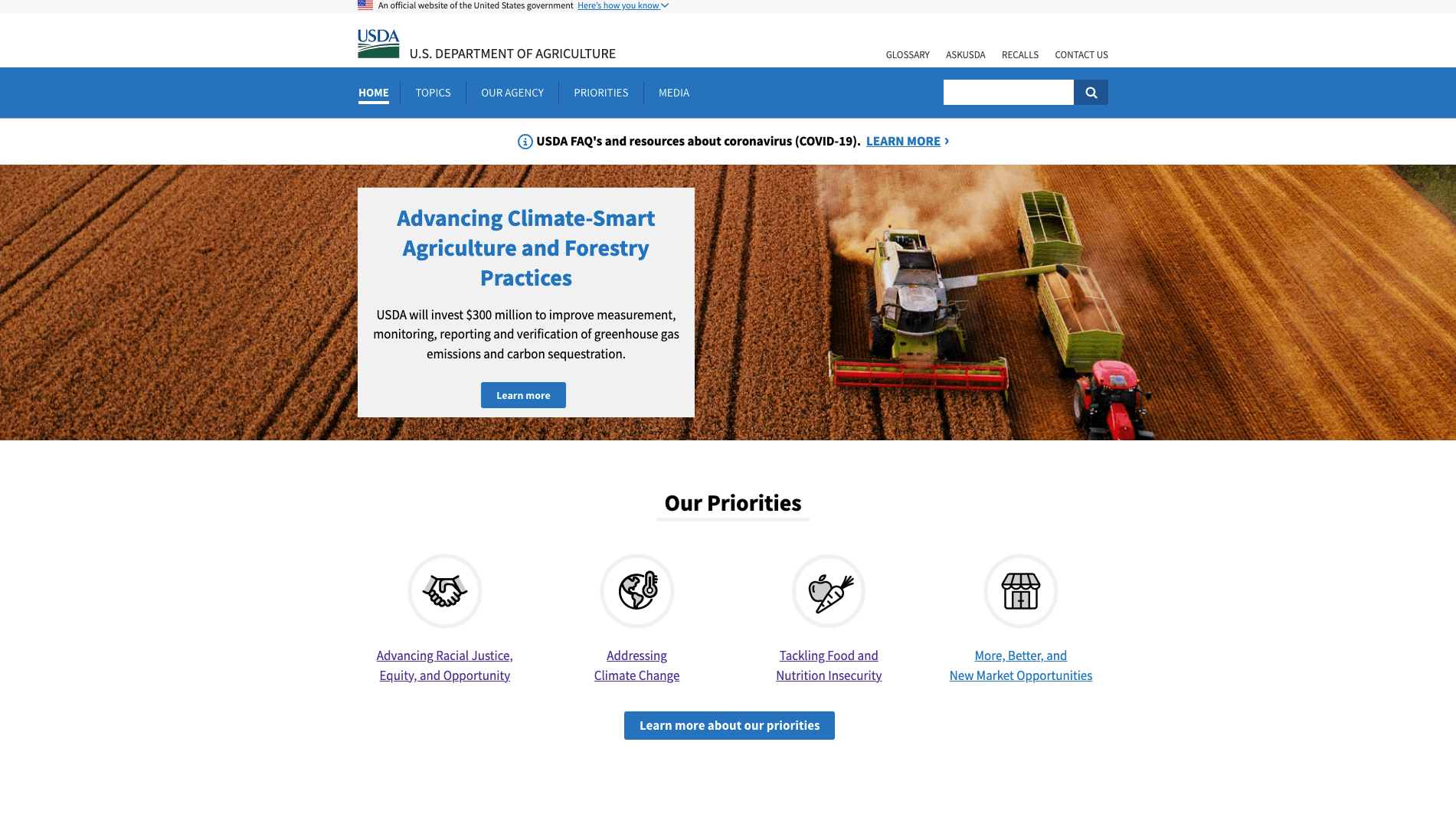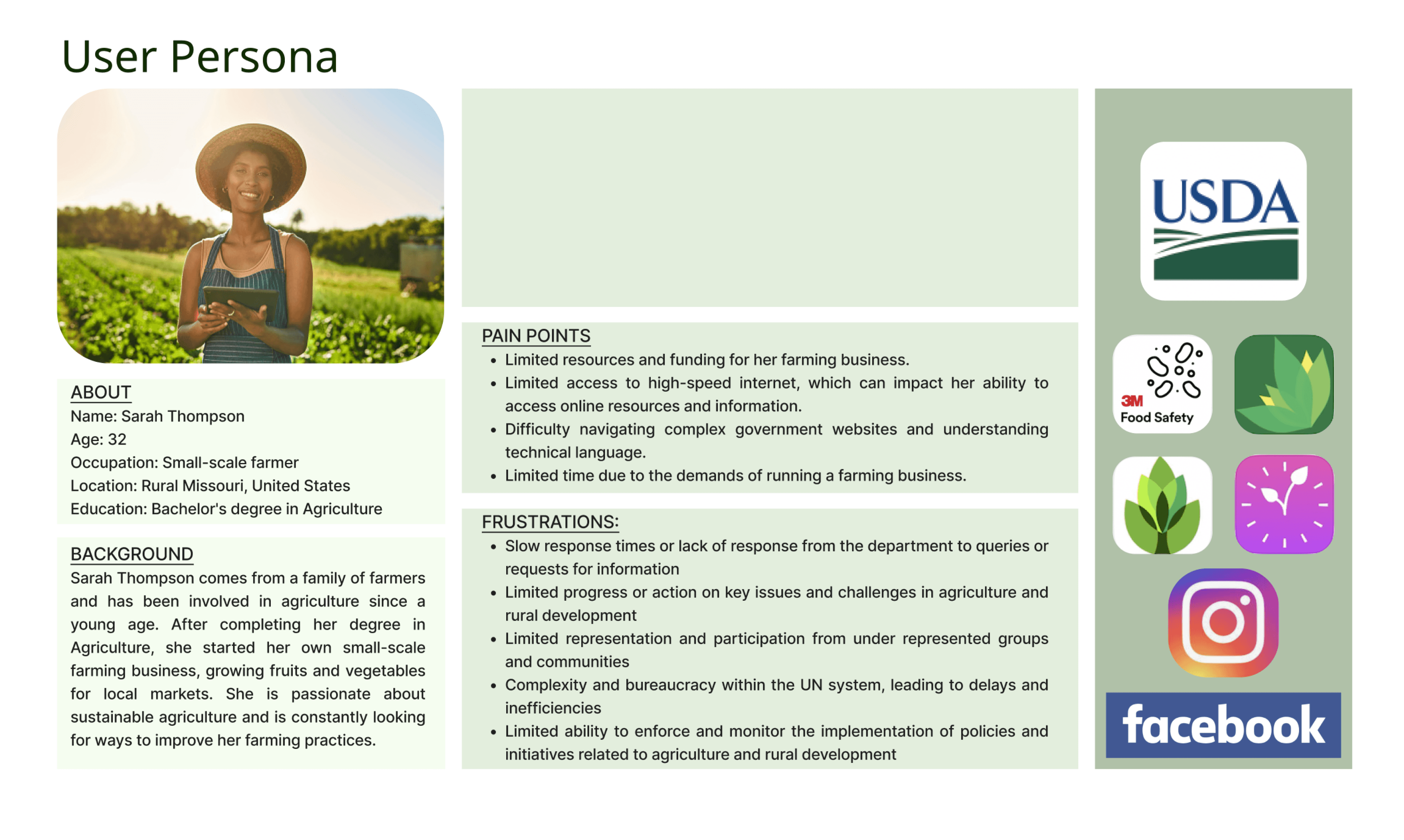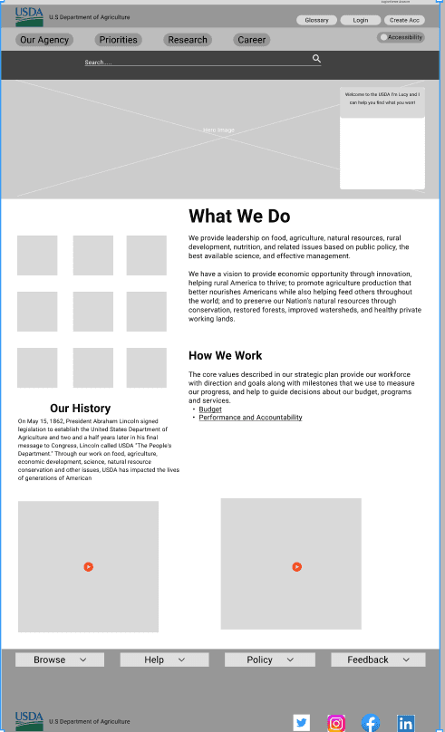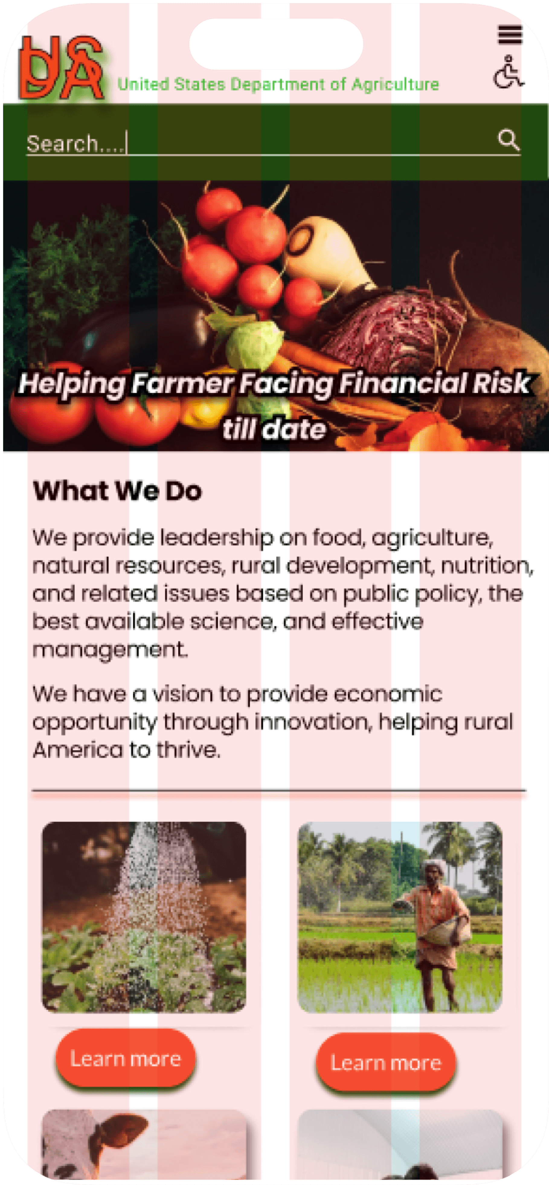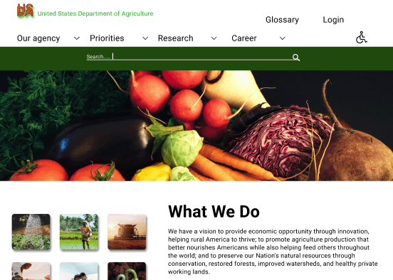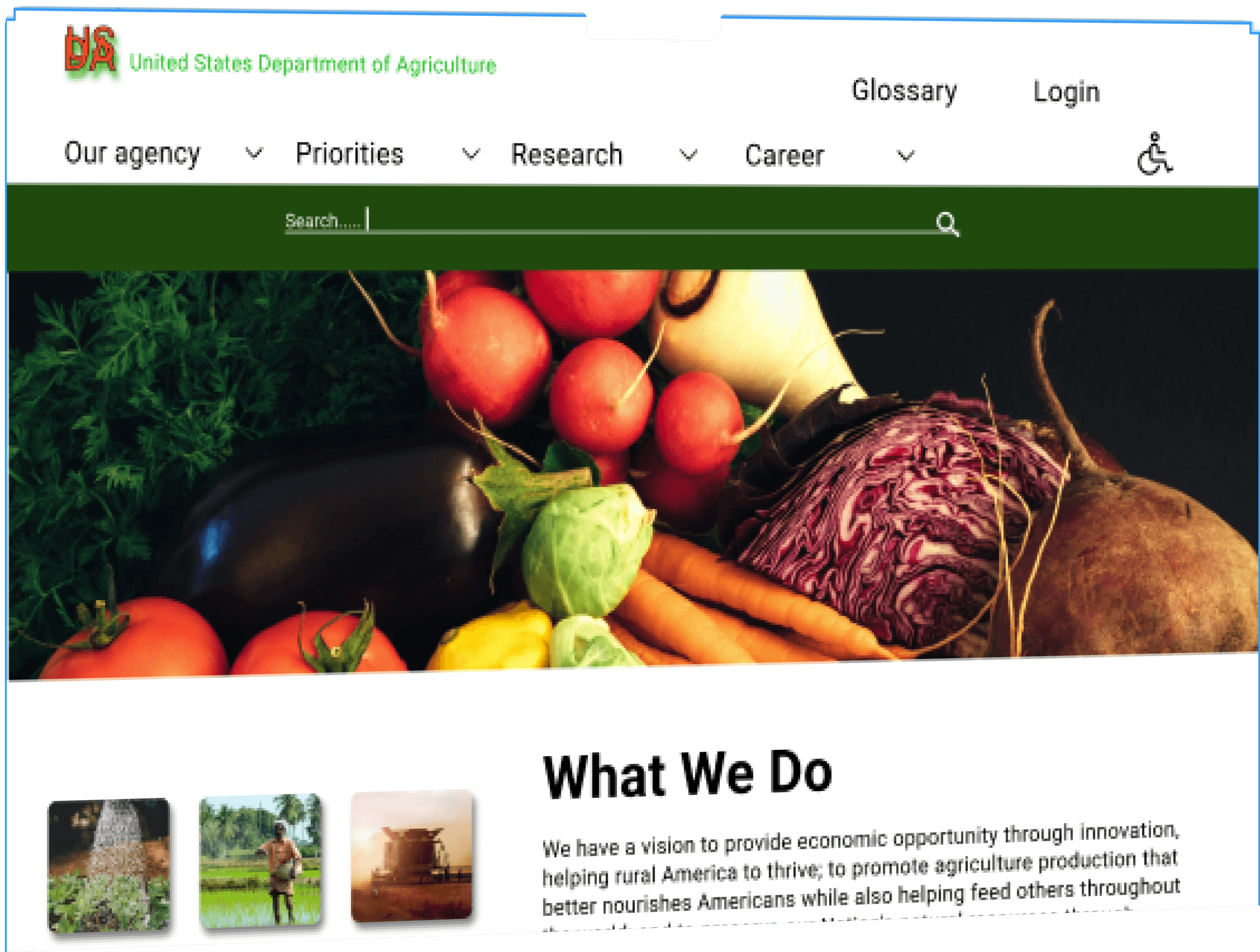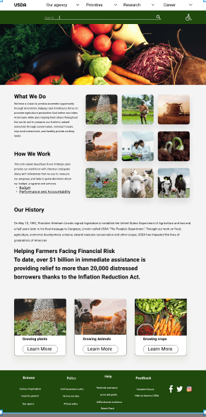 The USDA website plays a crucial role in providing information, services and resources to farmers and ranchers, consumers, and the other stockholders. However, the existing UI may have limitations and usability issues that hinders its effectiveness. This projects aims to address those issues by: